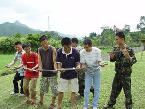 這是一個團隊競爭項目,高爾夫球在運動的過程中,只能前進不能停止或倒退。高爾夫球只能在管道內運行,不能脫離至地面或接觸身體部位。高爾夫球通過該隊員設置的管道時,該隊員不能離開自己的位置,球體通過后,才可離開。 隊員所持管道在接到球體后,只能上下移動,不可左右橫向移動。必須將高爾夫球安全送到指定的目標處。必須在規(guī)定的時間內完成