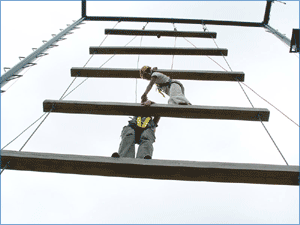 項目規(guī)則:本項目的操作較困難。它必須通過學員之間的能力協(xié)作,戰(zhàn)勝恐懼一起爬巨人梯。本項目主要用于確定團隊目標,認清個