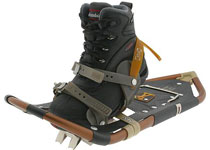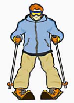 2、穿滑雪鞋很有講究。先將褲筒卷起,用力把鞋后的搭扣扣住,再把旁邊的按鈕撳下。如果是租用滑雪場的專用滑雪服,特制的褲邊搭扣可以把雪鞋圍住,防止摔跤時進雪。穿好鞋后站起來,感覺兩腿像綁了石膏,很沉。接下來踏上滑板,竅門是先將前腳掌套住,后腳跟用力向后蹬,聽到“啪”的 一聲后,說明滑雪鞋已經(jīng)固定在滑板上了。