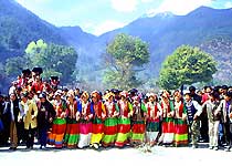 登巴節(jié)是尼汝藏族具有濃郁特色的傳統(tǒng)節(jié)日之一,又是藏族農(nóng)業(yè)地區(qū)生產(chǎn)性傳統(tǒng)節(jié)日。屆時(shí),男女老少穿上節(jié)日的盛裝,舉行集體祭祀山神、仙人洞和育嘛呢經(jīng)儀式,消災(zāi)驅(qū)邪,祈求五谷豐登、六畜興旺。此外,還舉行賽馬、打靶、斗牛、跳鍋莊舞等娛樂活動(dòng)。