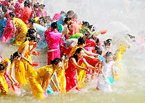 傣族潑水節(jié):4月中旬。傣歷新年、人們相互潑水以示祝福,還有多種慶?;顒?dòng)。