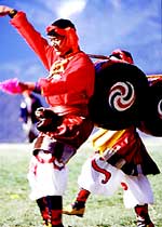 格冬節(jié)即跳神節(jié),意思為九樣食物燴煮聚餐之意,是藏傳佛教寺院專門組織的一種跳神驅(qū)鬼的宗教活動(dòng)。各寺院格冬節(jié)的時(shí)間各不相同,香格里拉噶丹·松贊林寺在藏歷12月26至29日。26日為跳神預(yù)演;在寺院內(nèi)進(jìn)行,27、28日為誦經(jīng)法會(huì);29日為跳神面具舞,面具多種多樣,有馬、鹿、猴、牦牛、狗、烏鴉、豬、虎等,舞蹈有嗩吶、鼓、跋等器樂伴奏,氣氛十分神秘,持續(xù)時(shí)間為1天。