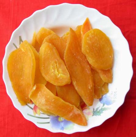 1、一般是將整塊地瓜蒸熟去皮,然后壓制、烘烤。制成之后可保存幾年不壞,既可當(dāng)零食,也可切成小塊,拌上面料、雞蛋、香料,經(jīng)油炸再沾上冰糖粉作為酒席名菜。這是早期的制作方法,主要產(chǎn)地是連城隔田。