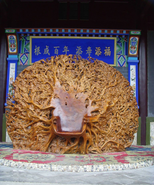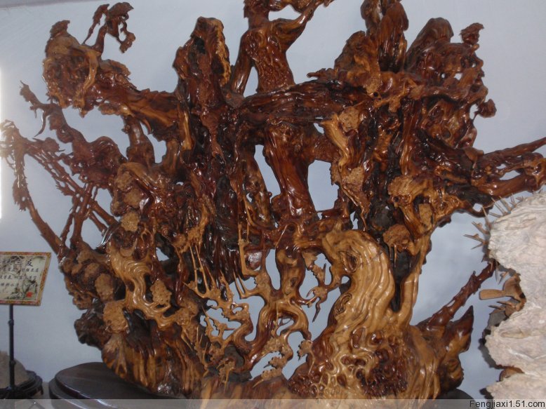 根雕,是以樹根(包括樹身、樹瘤、竹根等)的自生形態(tài)及畸變形態(tài)為藝術(shù)創(chuàng)作對象,通過構(gòu)思立意、藝術(shù)加工及工藝處理,創(chuàng)作出人物、動物、器物等藝術(shù)形象作品。根雕藝術(shù)是發(fā)現(xiàn)自然美而又顯示創(chuàng)造性加工的造型藝術(shù),所謂“三分人工,七分天成”,就是說在根雕創(chuàng)作中,大部分應利用根材的天然形態(tài)來表現(xiàn)藝術(shù)形象,少部分進行人工處理修飾,因此,根雕又被稱為“根的藝術(shù)”或“根藝”。