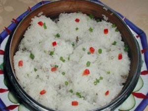 “珍珠土龍”屬于山珍菜之一,原料以土龍和糯米為主料,配上姜末、白糖、米酒等。烹制時將宰殺好除去內臟的整只土龍,抹上糖、鹽、酒、姜末,糯米泡漲后裝入盆,把土龍放在米上,人鍋密封蒸熟后取出,稍涼后將土龍切塊重新置于糯米上上席。蒸熟的糯米純白,粒粒如珍珠,因而得名珍珠土龍。