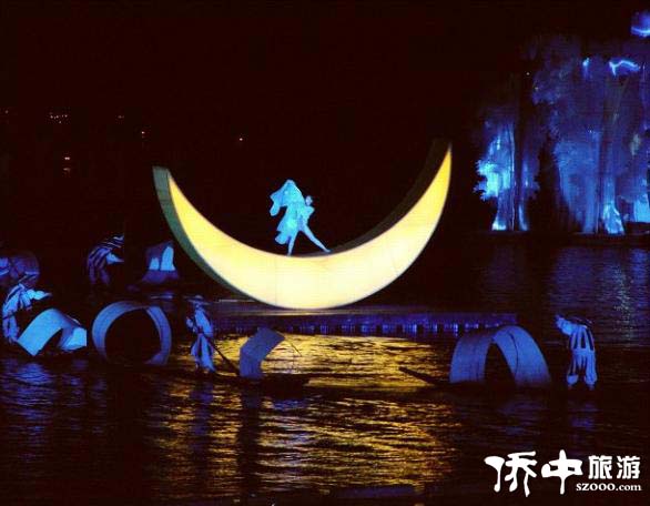 方圓兩公里的漓江水域,十二座背景山峰,廣袤無際的天穹,構(gòu)成迄今世界上最大的山水劇場——印象劉三姐。投資建設(shè)造的目前國內(nèi)最大規(guī)模的環(huán)境藝術(shù)燈光工程及獨特的煙霧效果工程,創(chuàng)造出如詩如夢的視覺效果。傳統(tǒng)演出是在劇院有限的空間里進行,這場演出則以自然造化為實景舞臺,放眼望去,漓江的水,桂林的山,化為中心的舞臺,給人寬廣的視野和超然的感受。在印象劉三姐,山峰的隱現(xiàn)、水鏡的倒影、煙雨的點綴、竹林的輕吟、月光的披灑隨時都會進入演出,成為美妙的插曲。晴天的漓江,清風(fēng)倒影特別迷人;可煙雨漓江,賜給人們的卻是另外一種美的享受;細(xì)雨如紗,飄飄瀝瀝;云霧繚繞,似在仙宮,如入夢境……演出正是利用晴、煙、雨、霧、春、夏、秋、冬不同的自然氣候,創(chuàng)造出無窮的神奇魅力,使那里的演出每場都是新的。