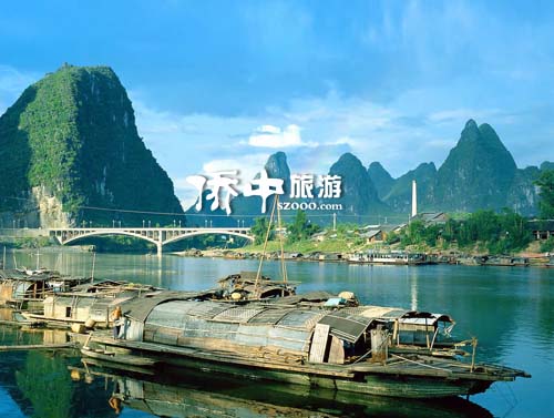 如詩如畫的漓江是桂林山水的重要組成部分,它發(fā)源于桂林東北興安縣的貓兒山,流經(jīng)桂林、陽朔,至平樂縣恭城河口,全長170公里。由桂林至陽朔84公里的漓江,像一條青綢綠帶,盤繞在萬點峰巒之間,奇峰夾岸,碧水縈回,削壁垂河,青山浮水,風(fēng)光旖旎, 猶如一幅百里畫卷。這百里漓江,依據(jù)景色的不同,大致可分為三個景區(qū):第一景區(qū):桂林市區(qū)至黃牛峽。兩岸奇峰林立,城鎮(zhèn)、農(nóng)村、田園錯落分布,景觀多樣,是觀賞遠山近水與人文民風(fēng)的佳處,構(gòu)成了畫卷的開頭部分。這一景區(qū)的主要景點有象鼻山、斗雞山、凈瓶臥江、奇峰林立、父子巖、龍門古榕、大圩古鎮(zhèn)、磨盤山等。第二景區(qū):黃牛峽至水落村。夾岸石山連綿不斷,奇峰圍巒映帶,是漓江風(fēng)光的精華所在,構(gòu)成了畫卷的主體部份。主要景點有望夫石、草坪帷幕、冠巖幽府、半邊渡、鯉魚掛壁、童子拜觀音、八仙過江、九馬畫山、青峰倒影、興坪佳景等。