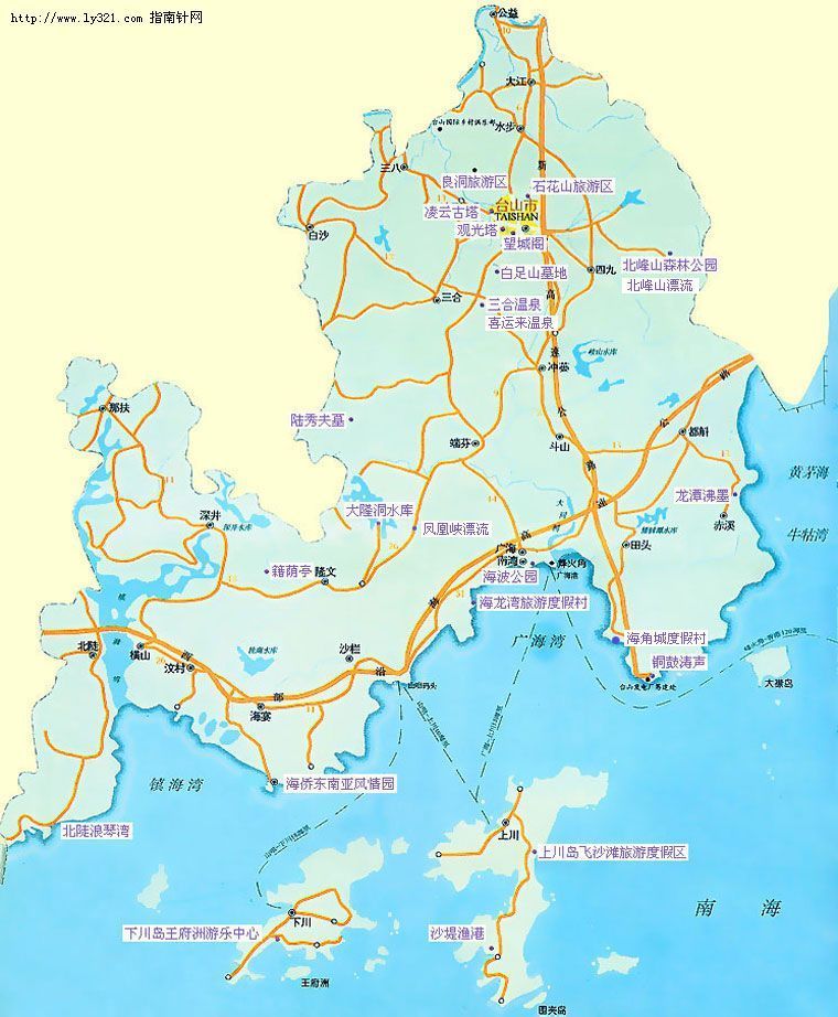 地理:江門全境北自鶴山市古勞鎮(zhèn)的麗水,南至臺山市的下川鎮(zhèn)圍夾島,相距142.2公里;東自新會區(qū)大鰲尾,西至恩平市那吉鎮(zhèn)蛤坑尾,相距130.68公里。江門市區(qū)位于市域東部,東西相距46.6公里,南北相距79.55公里。臺山市、新會區(qū)的南部和恩平市的東南部瀕臨南海,大陸岸線長283.36公里。島嶼岸線共長331.51公里。面積在500平方米以上的島嶼有97個,其中臺山市上川島面積最大,為137.16平方公里;下川島次之,為81.73平方公里。屬江門市水深200米以內的沿海大陸架,東起黃茅海,西至鎮(zhèn)海灣,面積約2257平方公里。 地形:江門市地勢西北高,東南低,北部、西北部山地丘陵廣布,東部、中部、南部河谷、沖積平原、三角洲平原寬廣,丘陵、臺地錯落其間,沿海砂洲發(fā)育,組成錯綜復雜的多元化地貌景觀。全市山地丘陵4400多平方公里,占46.13%。境內海拔500米以上的山地約占1.77%。800米以上的山脈有9座,多為東北--西南走向。恩平、開平市與新興縣接壤的天露山,長70余公里,走向偏北,主峰海拔1250米,為全市最高峰。北部的菱髻頂、皂幕山,東部的鑊蓋尖和南部的笠帽山、涼帽頂,均山勢陡峻,巖古嶙峋,呈"V"型谷發(fā)育。500米以下的山丘、臺地面積約占總面積80.34%,多分布于山地外圍,開平、臺山、江門市區(qū)的沖積平原內有零星點綴。丘陵多無峰頂,呈緩波起伏,坡面多為第四紀堆積。河流沖積平原、三角洲平原約占總面積17.89%,其中江門市區(qū)、新會以南由西江、潭江形成的三角洲平原面積達500平方公里,位于臺山南部由大隆洞河、都斛河形成的廣海都斛平原面積達300平方公里。由西江、潭江下游支流形成的河流沖積平原沿河作帶狀分布,中游狹長,下游寬闊,現(xiàn)多為良田。 境內地質構造以新華夏構造體系為主,主體為北東向恩平--從化深斷裂,自恩平經(jīng)鶴城斜貫全市延出境外;東部沿西江河谷有西江大斷裂。兩支斷裂帶構成境內基本構造格架。境內有震旦紀、寒武紀、奧陶紀、泥盆紀、石炭紀、二迭紀、三迭紀、侏羅紀、下第三紀及第四紀等地質年代的地層,尤以第四紀地層分布最廣。入侵巖形成期次有加里江期、加里東--海西期、印支期、燕山期,尤以燕山期最為發(fā)育,規(guī)模最大。