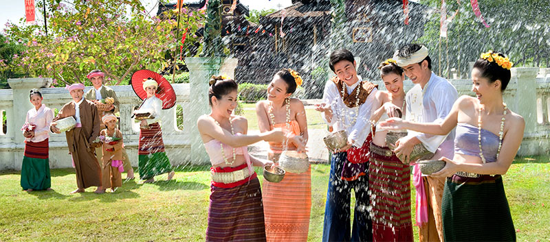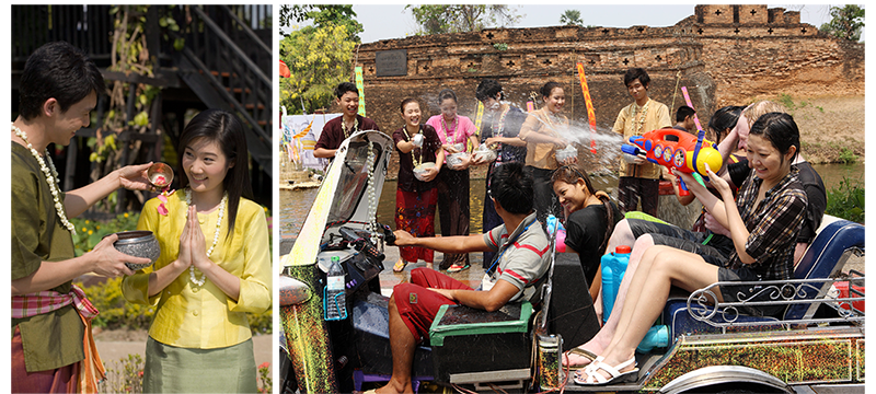2.)為晚輩或同輩潑水,輕輕的將水從對方的肩膀或后背下潑灑,并在同時獻上新年的祝福語。不過若對方是您親密的好友那么你們就可以彼此享受潑水的樂趣,只要注意禮儀和安全就行。