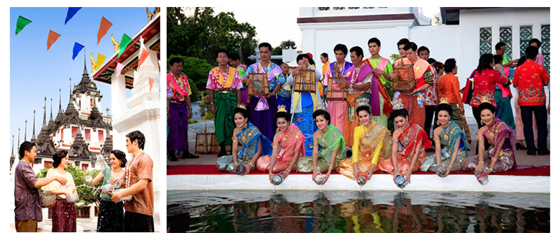 1.)為年齡超過60歲以上的長者潑水,為了表示尊敬和祝福,可以用有香味的水灑在長者的手上。