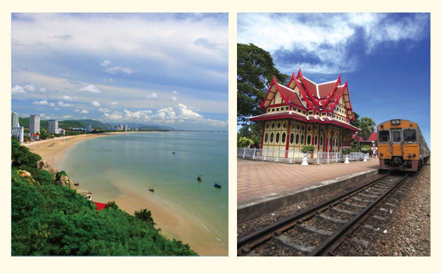 華欣位于曼谷南部281公里,到華欣可以坐汽車、火車甚至坐飛機(jī)去,不過最吸引人的應(yīng)該是坐火車去,因為那里的火車站是全泰國最古老、最有名、最漂亮的火車站?;疖囌窘ㄓ诶斄罆r期,擁有獨一無二的泰式建筑風(fēng)格的皇室人員候車室。候車室是在拉瑪六世時從Nakhon Pathom府的Sanam Chan宮搬過來的,當(dāng)年拉瑪六世就是在這里候車離開華欣回曼谷的。