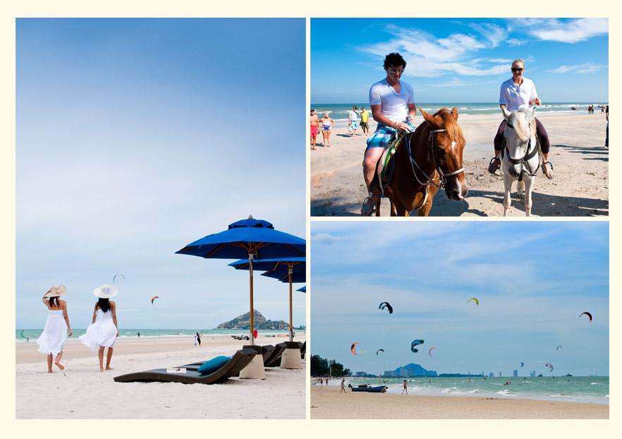 潔白的沙子,清澈的海水,靜謐的氛圍……華欣優(yōu)雅的海灘,到了這里心情也隨之變得非常放松。海灘是整個華欣城里太陽最早升起的地方,長達(dá)5公里的海灘上都是酒店,既有平房旅館也有五星級酒店。令人贊嘆的是,每家五星級的酒店后面都是海灘,給人的錯覺這是私家海灘。晚上枕著海浪聽濤聲入眠,早上看著最純凈的日出,是極奢華的享受。到華欣海灘如果沒有騎在馬背上沿著海灘來回溜一圈,那你就失去了很大的樂趣。當(dāng)泰國其他海灘都只提供那些嚴(yán)重刺激腎上激素的活動如光怪陸離的成人節(jié)目等的時候,華欣一直保持著它的平靜與優(yōu)雅。