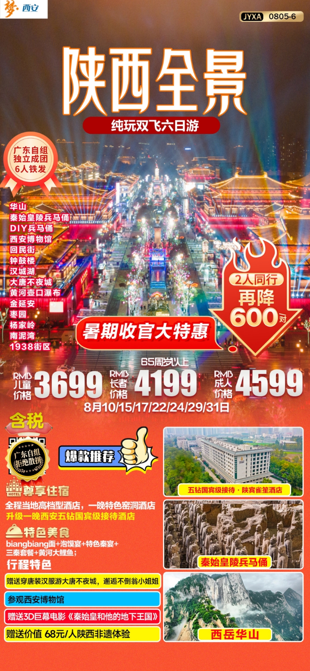 延安+壺口+西安+華山雙飛六日游 6人鐵發(fā)團(tuán)期: 8月15/17/22成團(tuán)鐵發(fā) 4199含稅