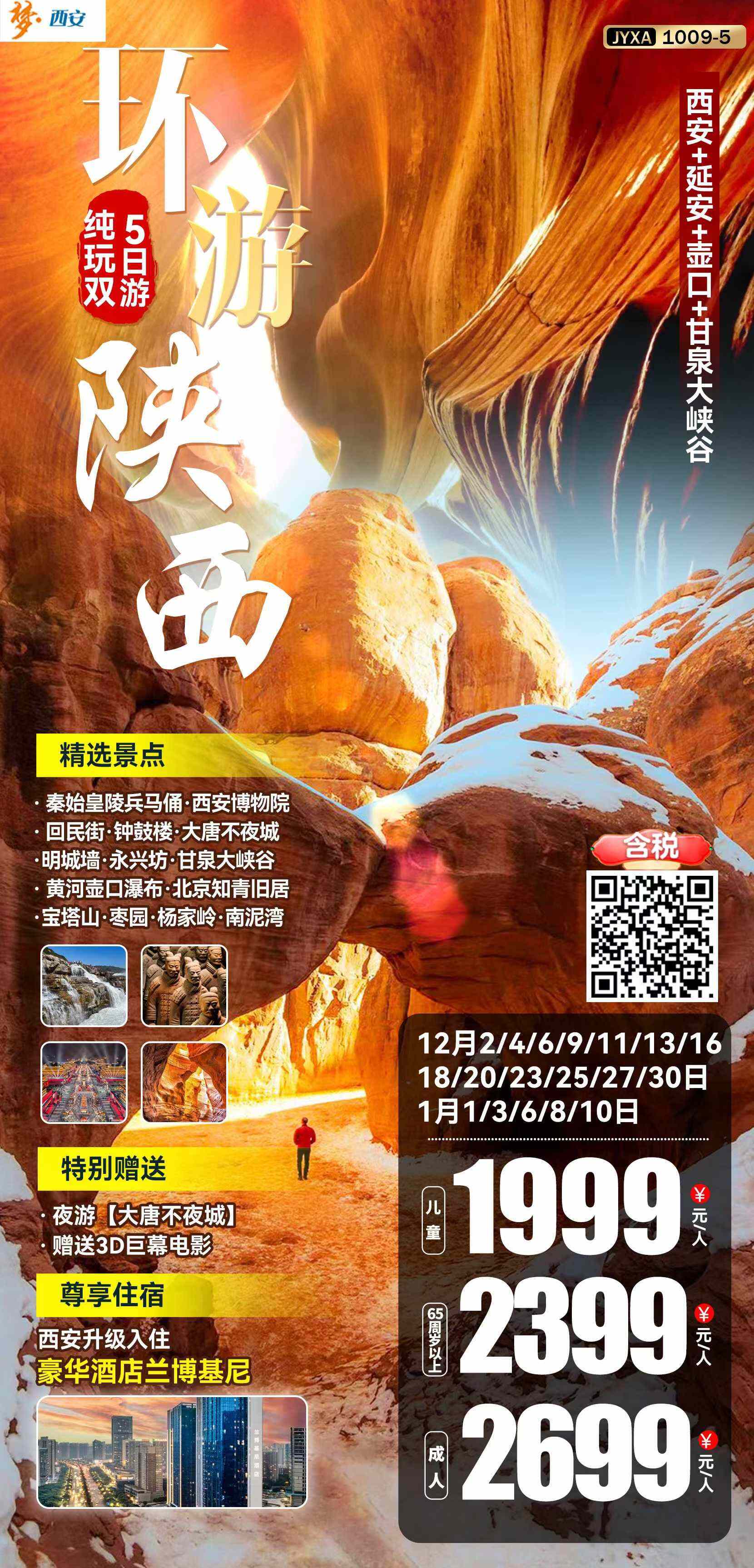西安+延安+壺口+甘泉大峽谷雙飛5日游
