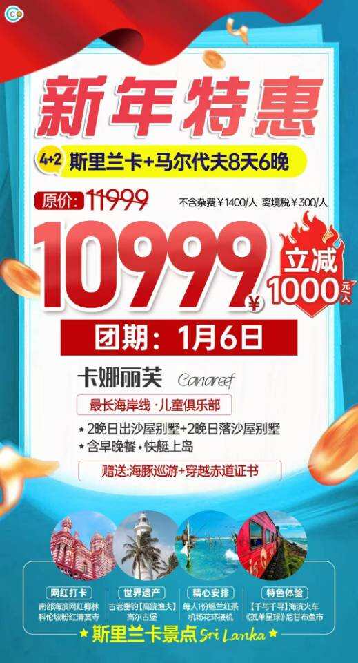 新年促銷直降1000!僅需10999游????斯里蘭卡+馬爾代夫????八天太超值啦
