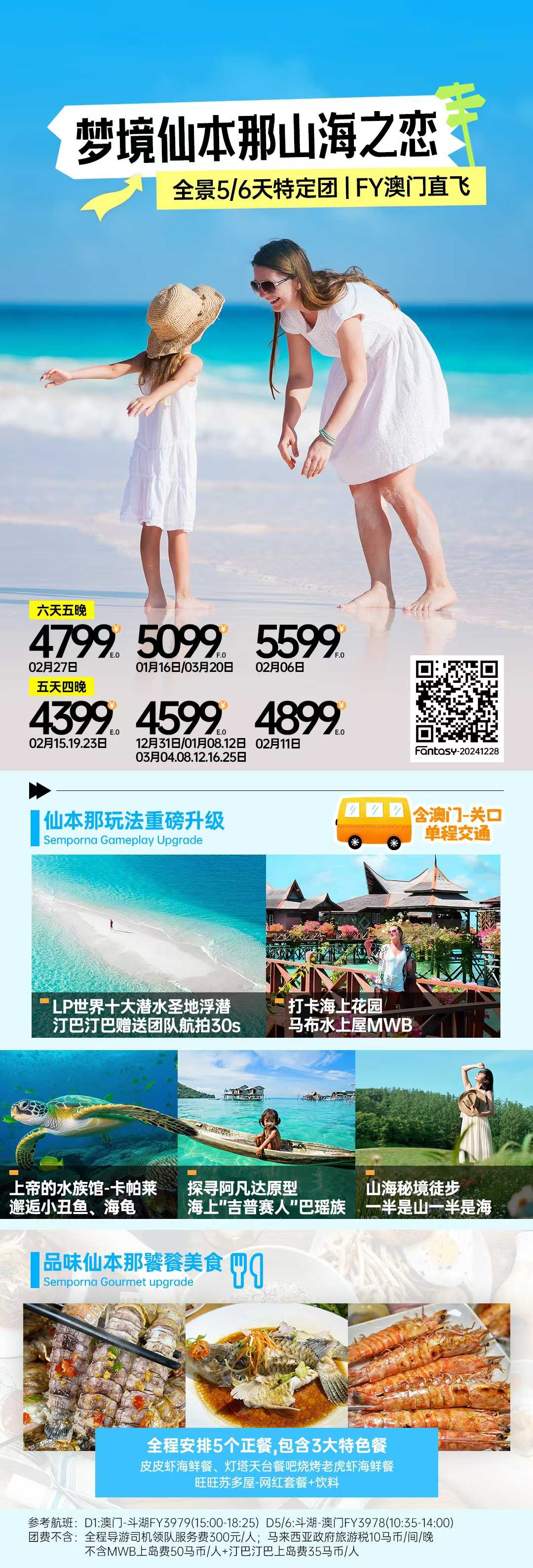 用餐升級:蘇眉魚海鮮餐+每人一只皮皮蝦、天臺日落吧+老虎蝦海鮮燒烤、網(wǎng)紅餐廳—旺旺蘇多屋美食套餐,出海安排溫?zé)岷喪阶灾停ň芙^冷飯盒)