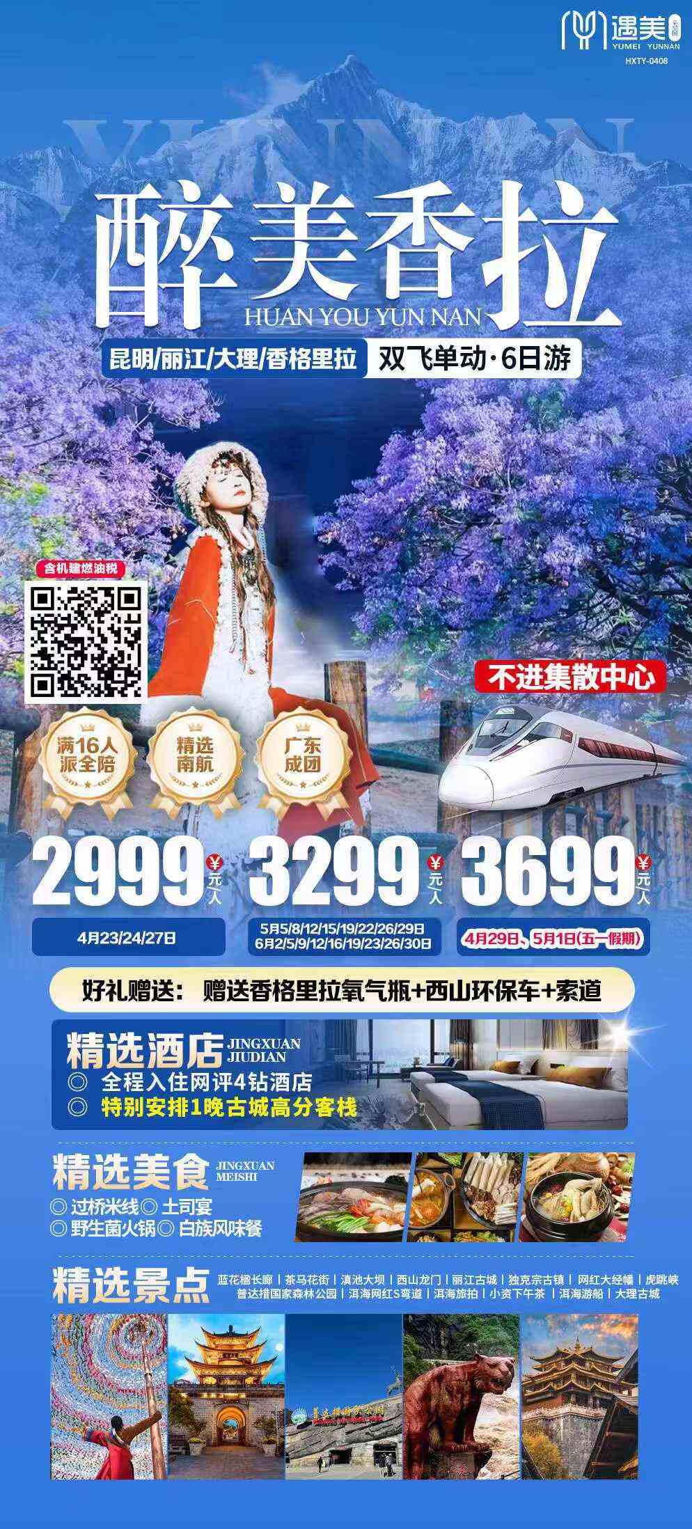 昆明大理麗江香格里拉,雙飛單動