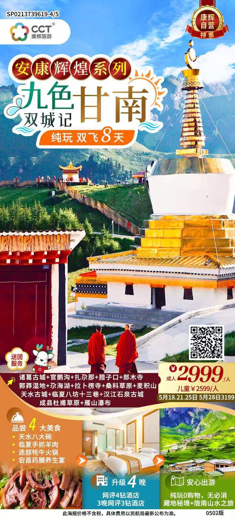 九色甘南 扎尕那 郎木寺 拉卜楞寺 ???天水 麥積山 石泉古城 純玩雙飛8天