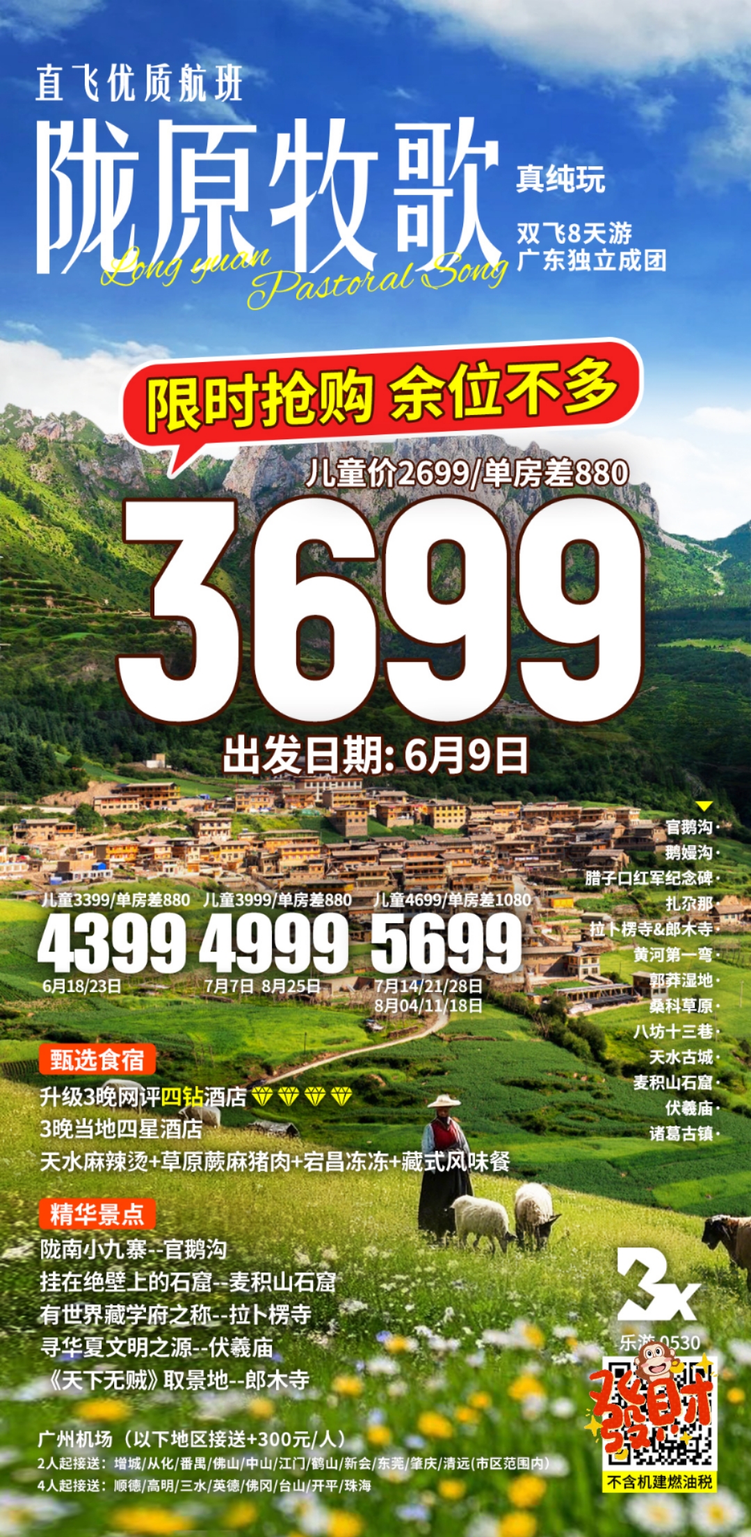 官鵝溝+鵝嫚溝+臘子口紅軍紀(jì)念碑+扎尕那+拉卜楞寺+郎木寺+黃河第一灣+郭莽濕地+??撇菰?八坊十三巷+天水古城+麥積山石窟+伏羲寺+諸葛古鎮(zhèn)+興漢勝境+漢人老家街