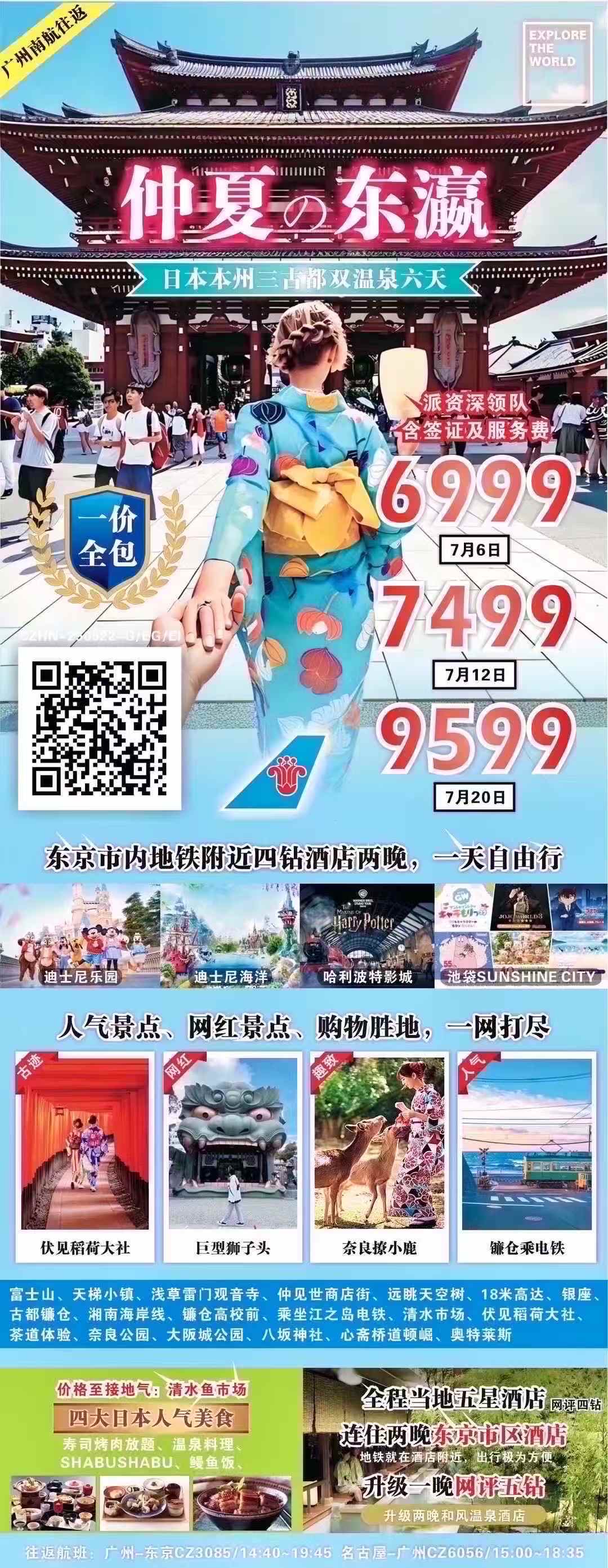 南航廣州往返0706/0712/0720出發(fā),贈(zèng)東京攻略
