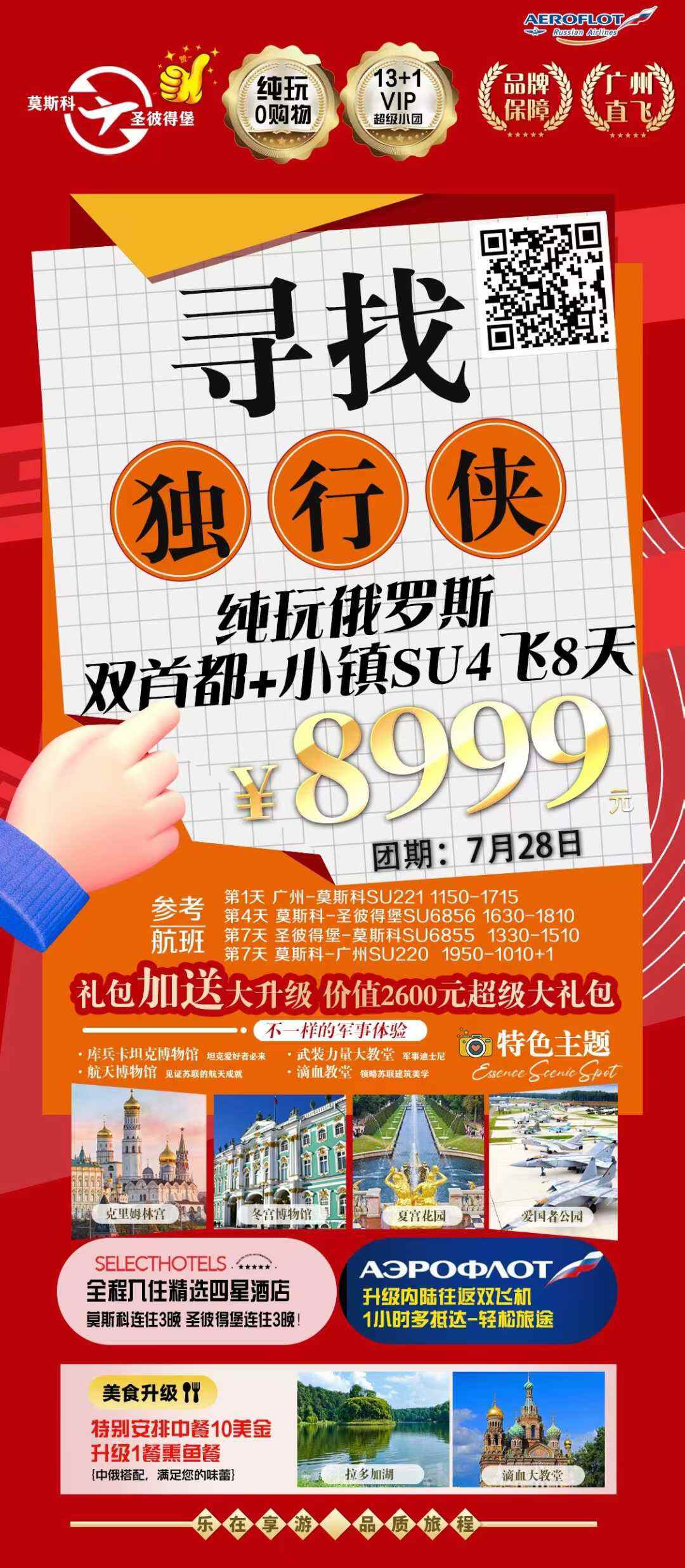 俄航廣州直飛內(nèi)陸雙飛俄羅斯8天 最后1位獨(dú)行俠