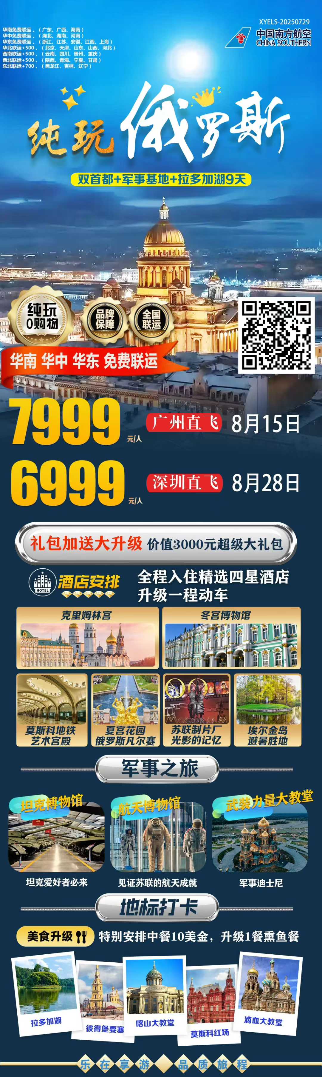 鐵發(fā)俄羅斯雙首都+軍事基地+拉多加湖9日游