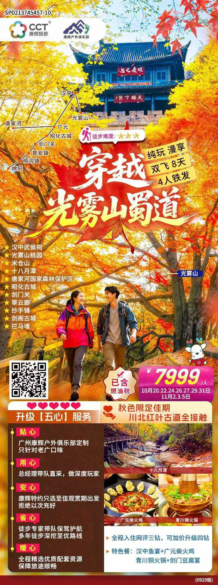 <特惠> 廣州往返 光霧山 米倉山 劍門關(guān) 昭化古城 古蜀道徒步賞秋八日游