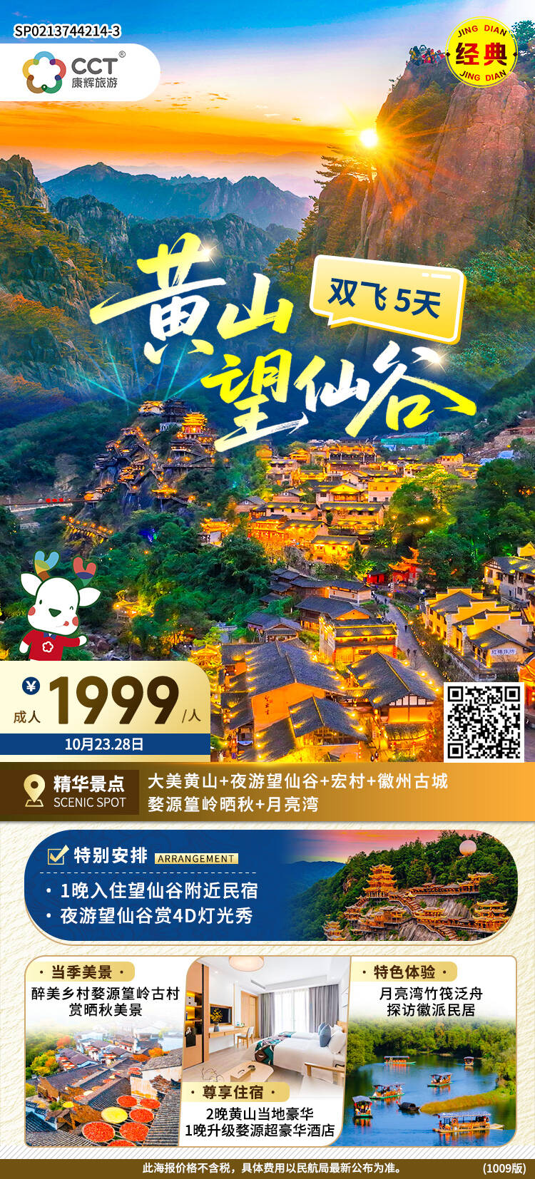 精華景點(diǎn) 大美黃山+夜游望仙谷+宏村+徽州古城