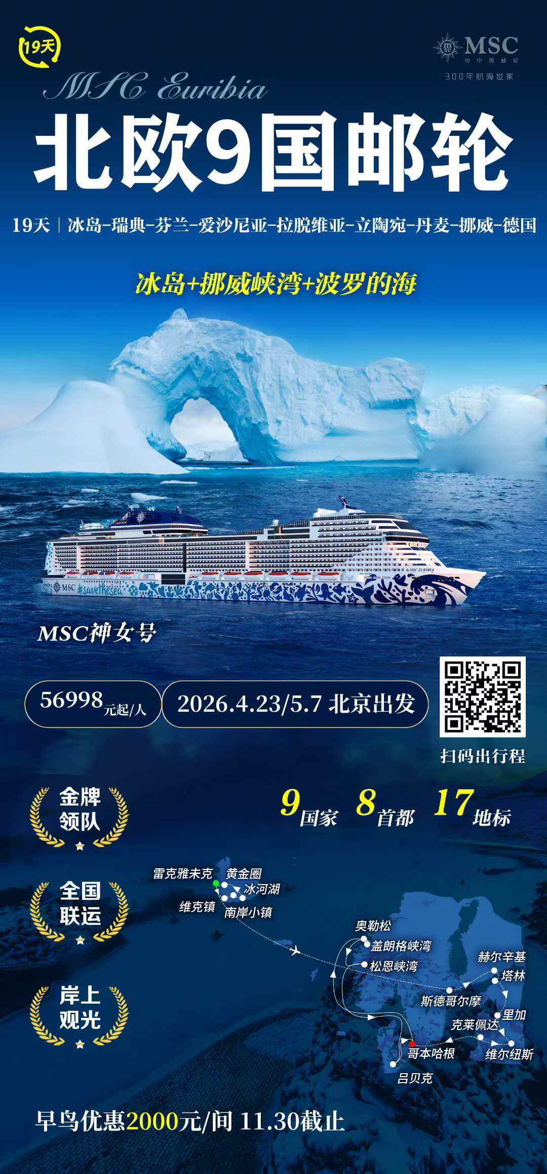MSC神女號-北歐全景9國郵輪2026年04月23日&05月07日
