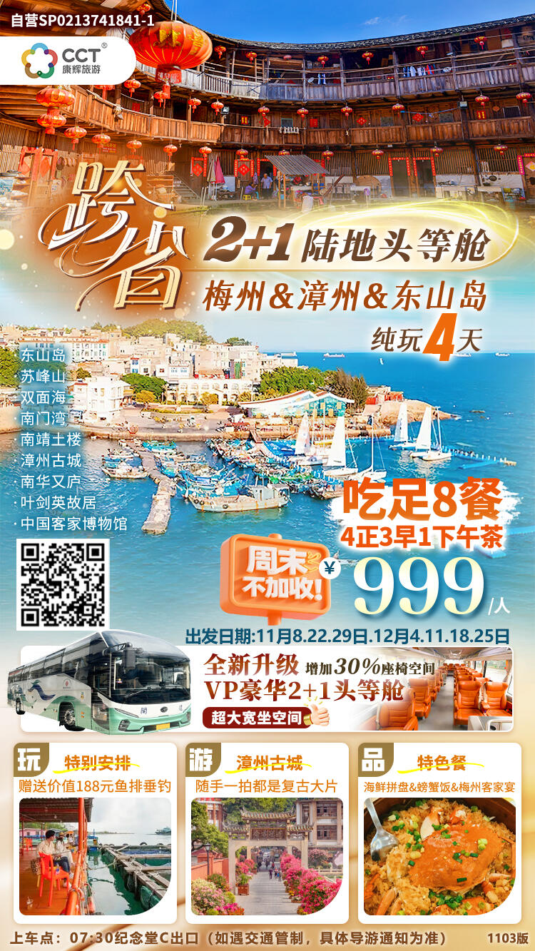 【跨省 陸地頭等艙】 世界客都梅州、漳州土樓&古城 漫游福建東山島純玩4日