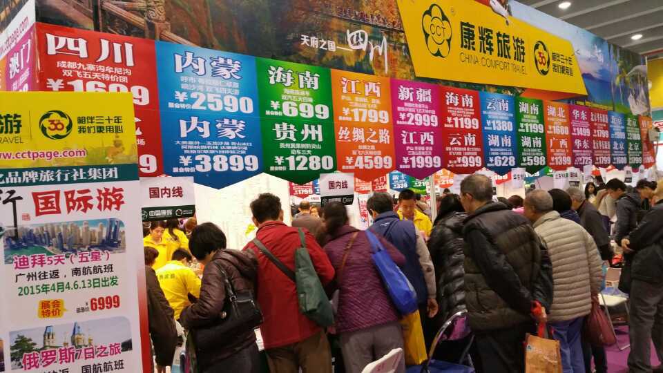 2015廣州國際旅游展6日在位于琶洲的中國進出口商品交易會展館開幕,吸引了來自43個國家和地區(qū)的780家與旅游相關(guān)的企業(yè)參展。廣州康輝“攜”眾多優(yōu)惠路線現(xiàn)身旅游展。 [所有展銷會線路都可康輝THYOO官網(wǎng)咨詢預(yù)訂,售完截止]