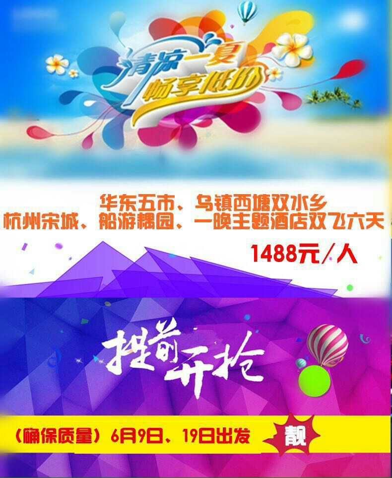 2、景點(diǎn)安排:景點(diǎn)為華東精品景點(diǎn)【中山陵】【中華藝術(shù)宮】【萬(wàn)國(guó)建筑博覽·外灘】【烏鎮(zhèn)】【西湖風(fēng)景區(qū)】【西塘古鎮(zhèn)】【藕園】【蠡園】等; 3、特別安排:江南最后的枕水人家——【烏鎮(zhèn)東柵】,“家橋水相連,人在畫中游”被譽(yù)為“最具水鄉(xiāng)魅力影視基地”。——【西塘古鎮(zhèn)】; 4、住宿安排:一晚入住水鄉(xiāng)民宿,感受江南水鄉(xiāng)的夜色闌珊;一晚宋城主題酒店,感受魅力千古情的情懷,免去來(lái)回車程帶來(lái)的辛苦; 5、溫馨贈(zèng)送:每人每天送一支礦泉水,感受品質(zhì)旅游服務(wù); |