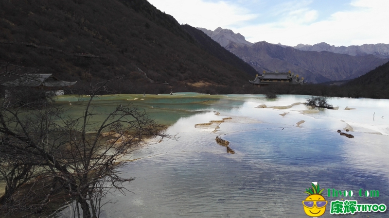 (黃龍五彩池,在雪山下 很漂亮)
