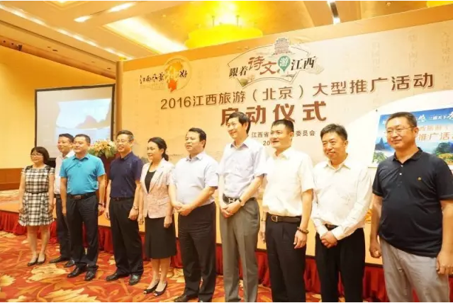 7月8日, “跟著詩文游江西”2016江西旅游(北京)大型推廣活動在王府井大街開帷幕。作為本次活動的重頭戲,江西省委副書記殷美根、副秘書長劉曉藝、國家旅游局巡視員劉士軍、江西省旅發(fā)委主任丁曉群、副主任李瑞峰、上饒市委常委,三清山管委會書記陳曉平、三清山管理委員會副主任葛健、康輝旅游集團(tuán)總裁石保棟、副總裁高鎖山等相關(guān)領(lǐng)導(dǎo)出席簽約儀式。