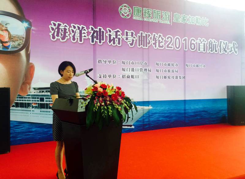 8月7日上午,福建康輝獨(dú)家包船——皇家加勒比“海洋神話號(hào)”游輪首航儀式在廈門母港隆重舉行。福建省旅游局、廈門市口岸辦、廈門市郵輪辦、廈門市郵經(jīng)辦、廈門港口管理局、廈門市旅游局以及郵輪公司等企事業(yè)單位領(lǐng)導(dǎo)出席儀式。