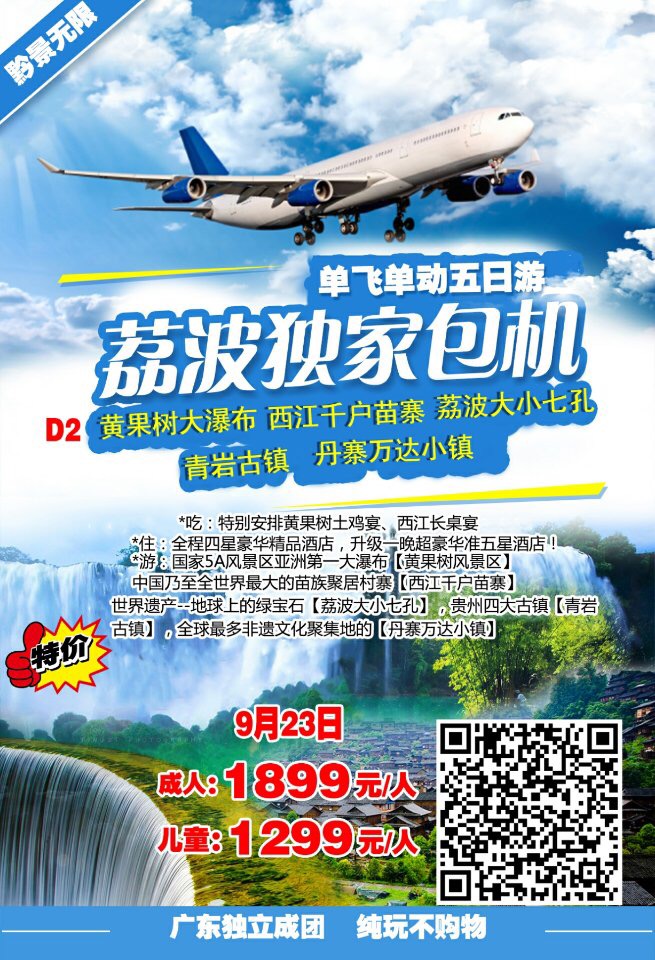 荔波獨(dú)家包機(jī)貴州全景五天,廣東獨(dú)立!純玩無購(gòu)物