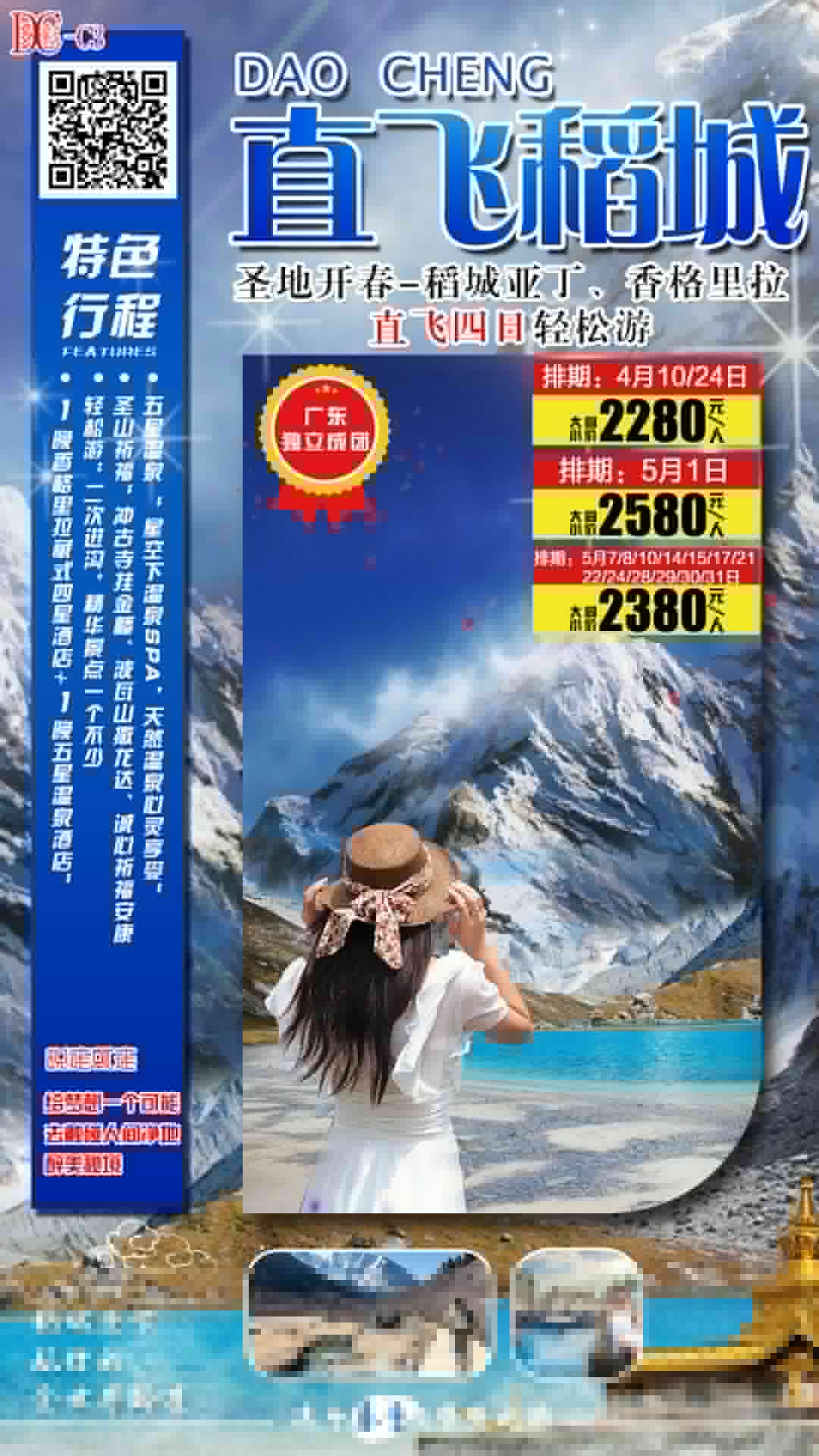 廣州直飛稻城,輕松直達,免除長途乘車勞累;