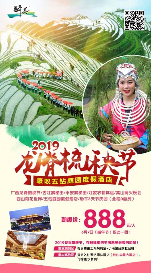 2019龍脊梳秧節(jié).999皇牌五鉆美食團(tuán)!端午節(jié)HOT高鐵活動(dòng),??臻品定制《0自費(fèi)一價(jià)全包》尊享體驗(yàn)!