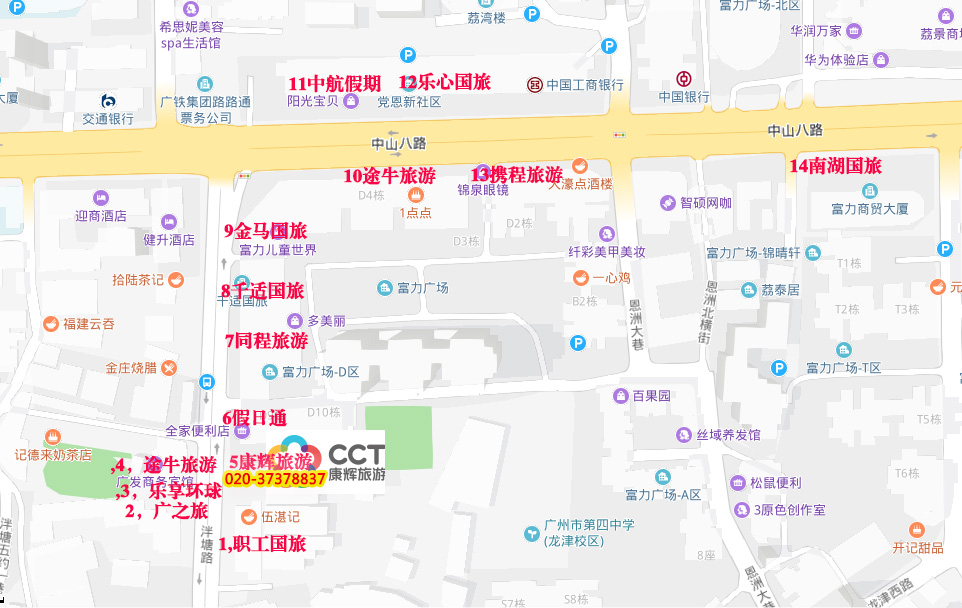 以下是廣州旅游一條街廣州各大旅行社門店分布圖(更新到2019年6月)