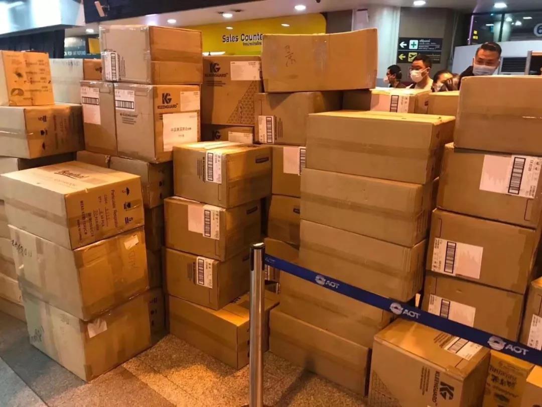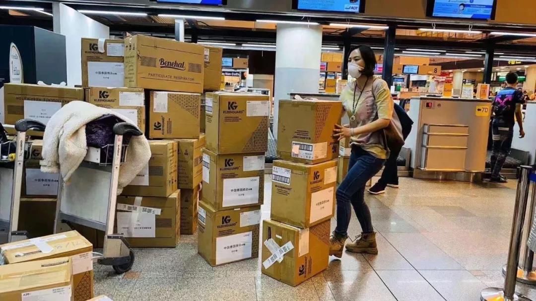 1 月 28 日下午 3 點(diǎn)左右,從泰國飛抵南通興東國際機(jī)場的航班緩緩降落。97 箱物資安全帶回,其中包括 1 萬余個口罩和 1800 多件防護(hù)服。這批物資到達(dá)后,由專人直接送往了疫情防控一線。
