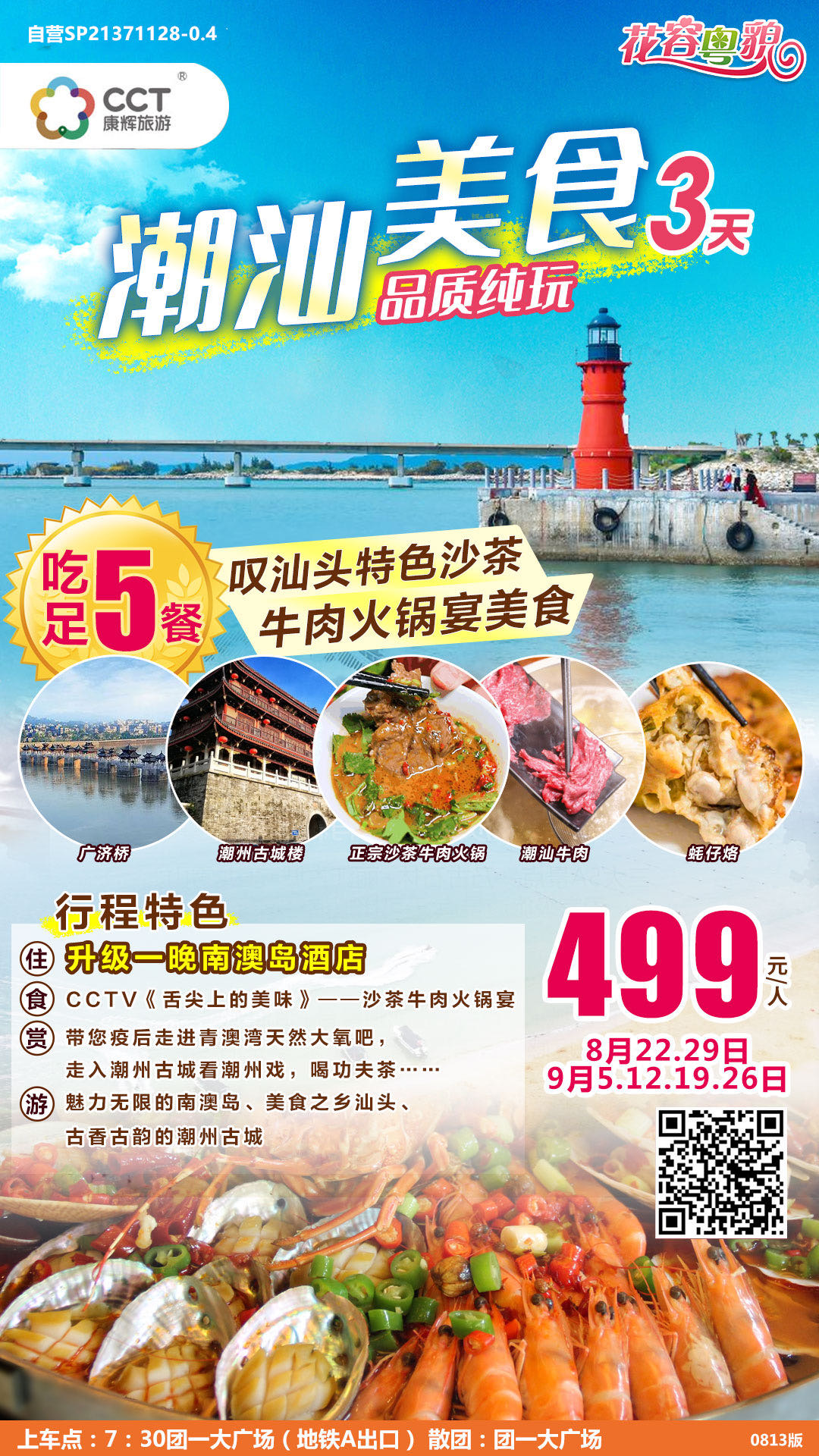 廣州往返潮汕南澳青澳灣&潮州古城·美食純玩3日游