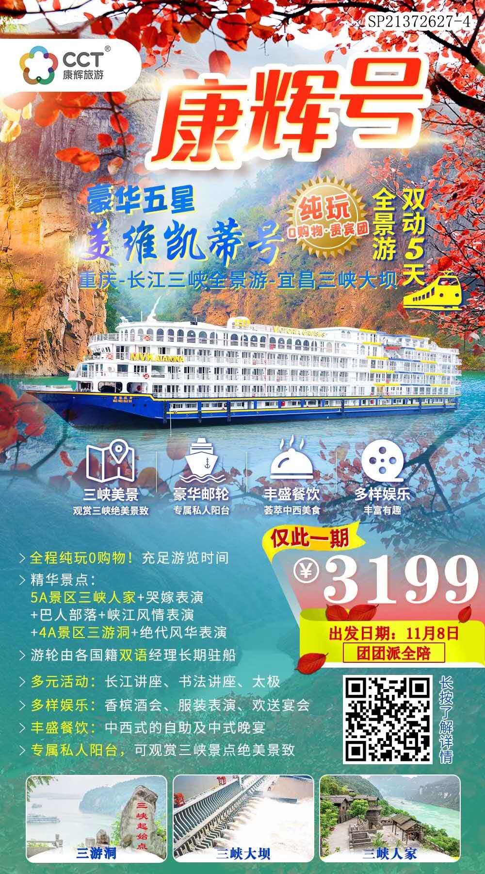 【康輝號(hào)】重慶-長(zhǎng)江三峽全景游-宜昌三峽大壩 雙動(dòng)五天純玩貴賓團(tuán)