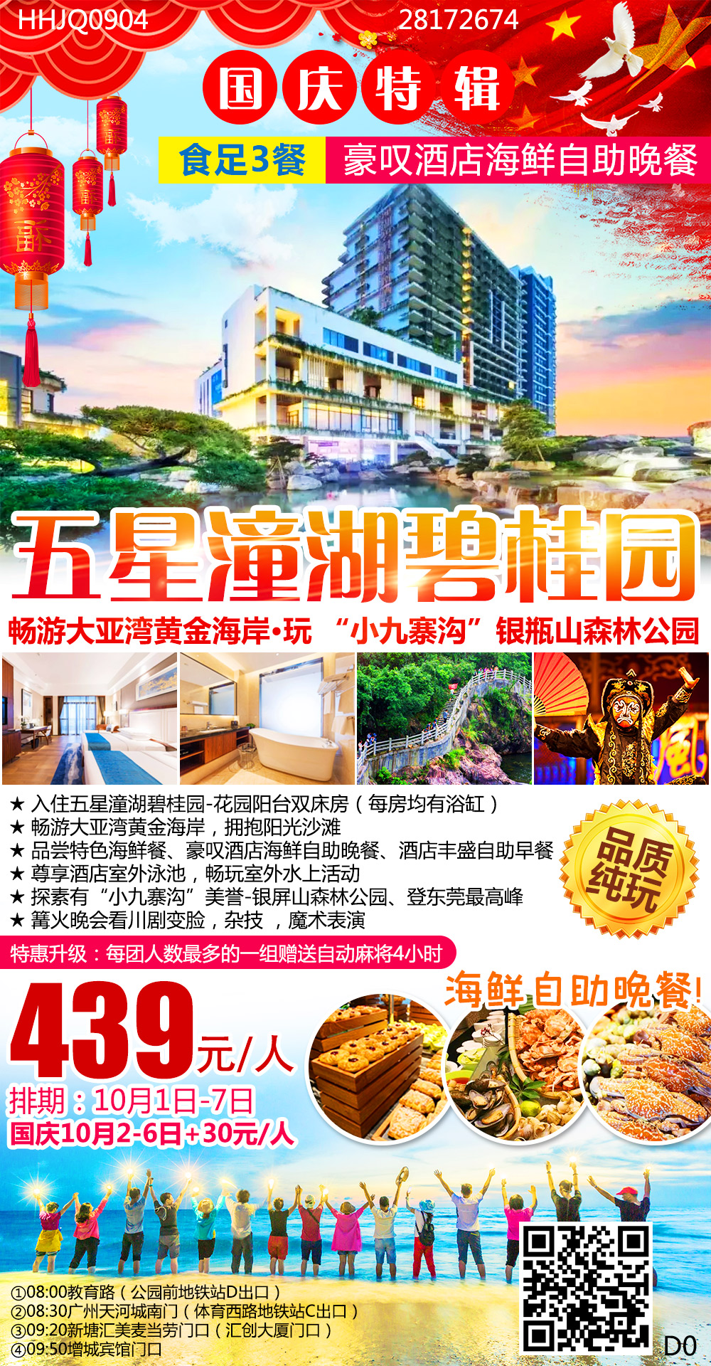 喜迎國慶1日已成團(tuán)!入住五星潼湖碧桂園