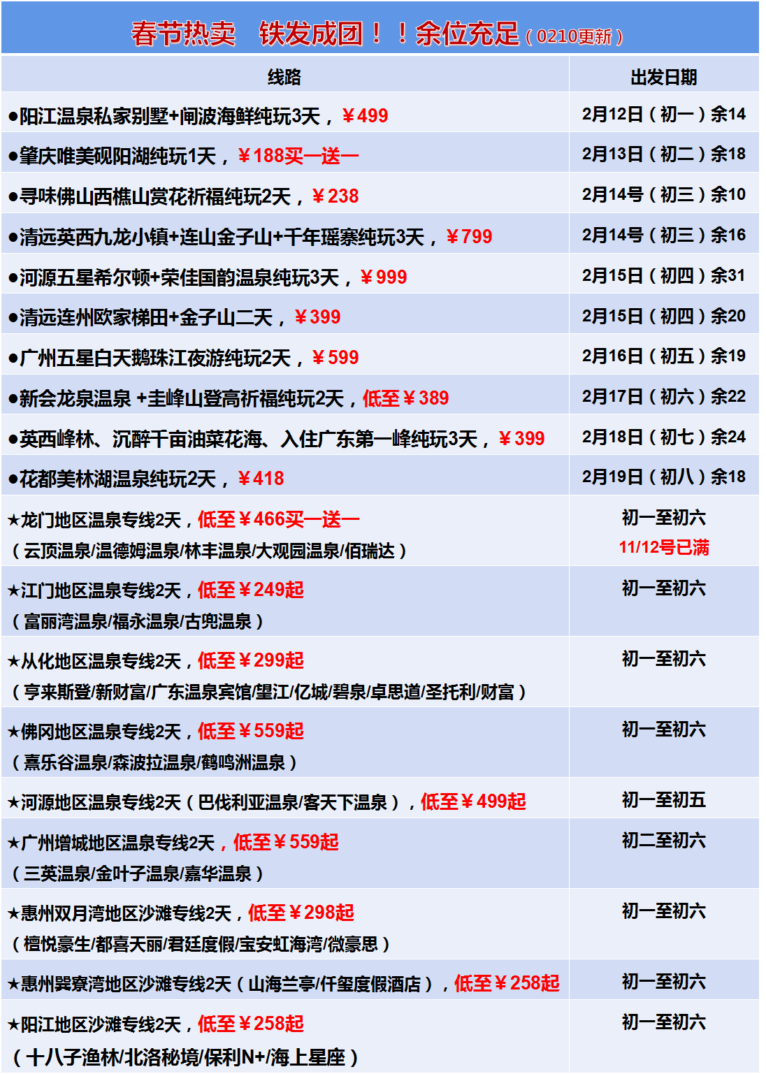 【初二至初六】廣州增城地區(qū)溫泉專線2天,低至¥559起