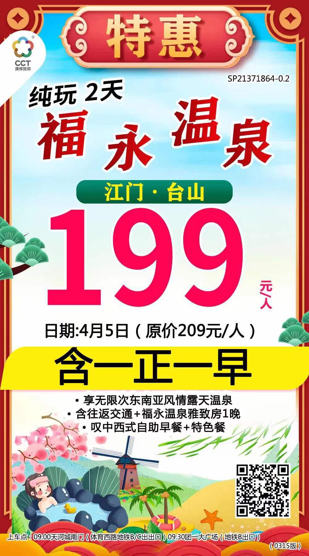 <直通車>廣州往返 江門亞洲福永溫泉2天半自助游