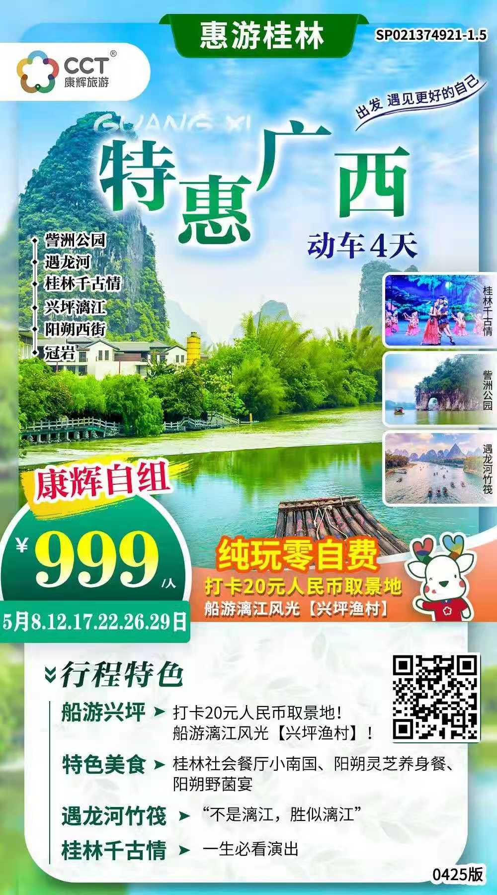 6、以上景點游玩時間僅供參考,具體以游覽中實際發(fā)生為準,因自然原因(如漓江水位大等)游覽時間會有所增減。