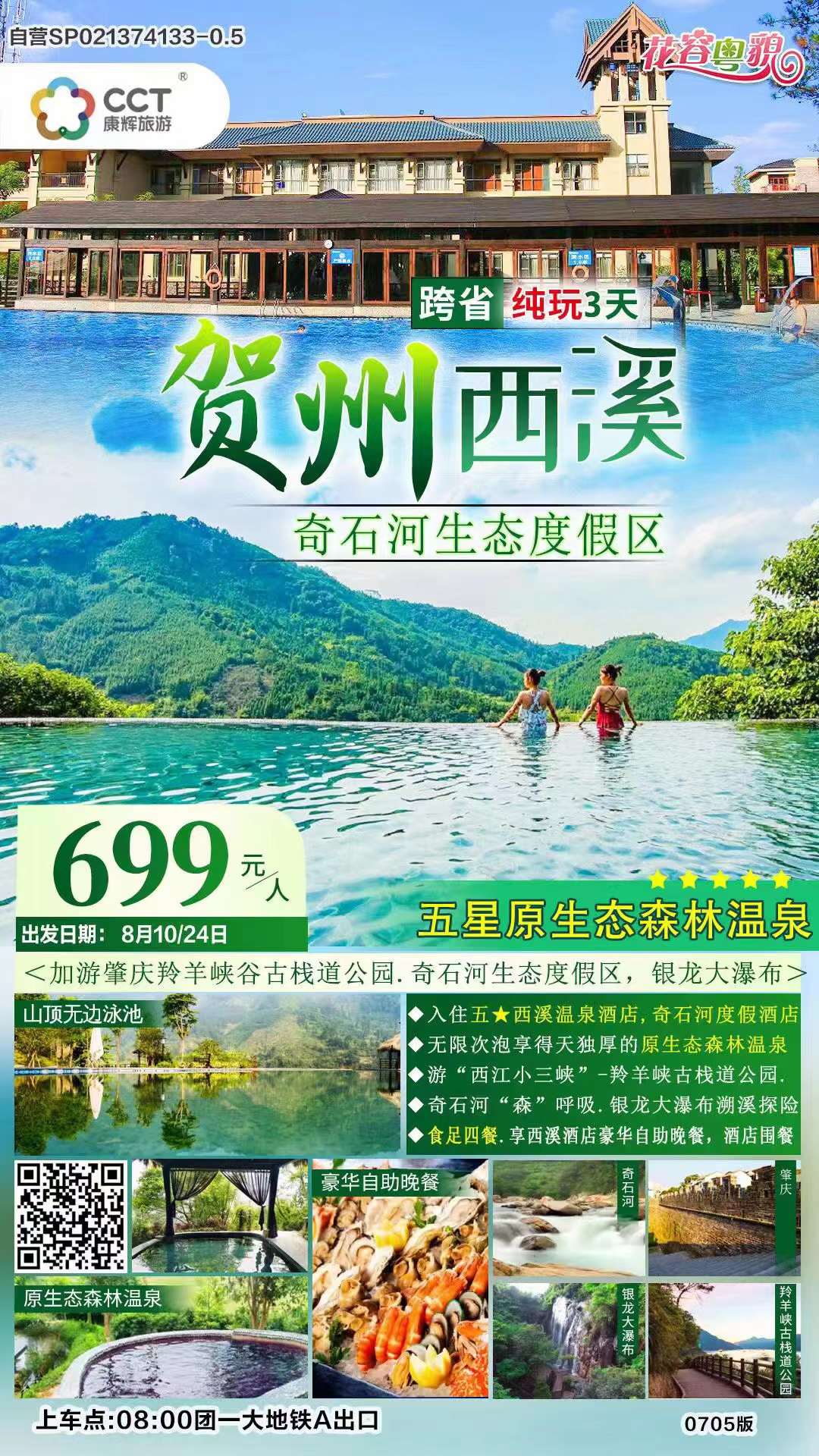 廣州往返賀州西溪森林溫泉.奇石河生態(tài)度假區(qū)純玩3天<加游肇慶羚羊峽>