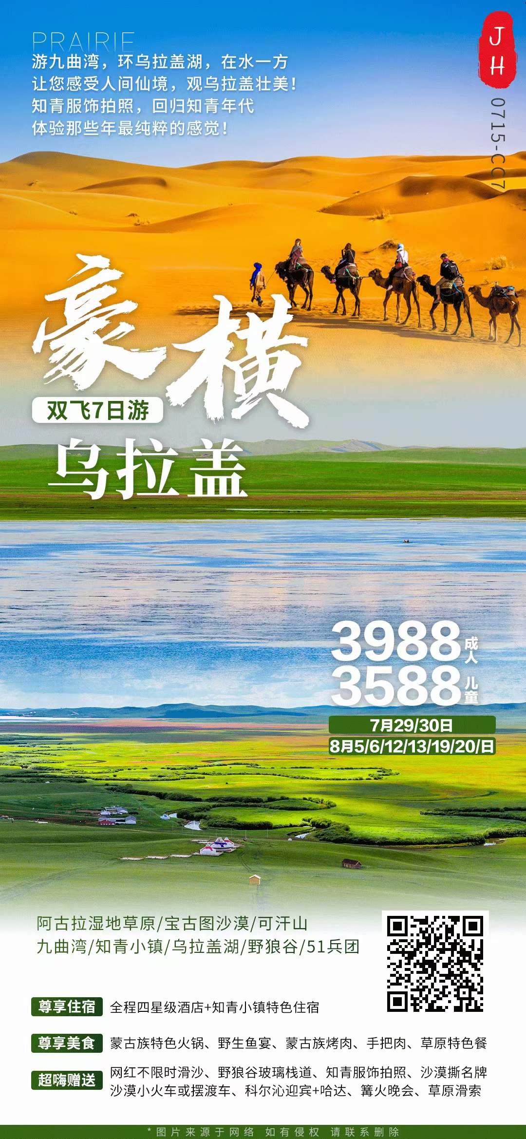 精選景??點:阿古拉濕地草原、寶古圖沙漠、可汗山、九曲灣、知青??小鎮(zhèn)、烏蓋拉??湖、野狼谷!