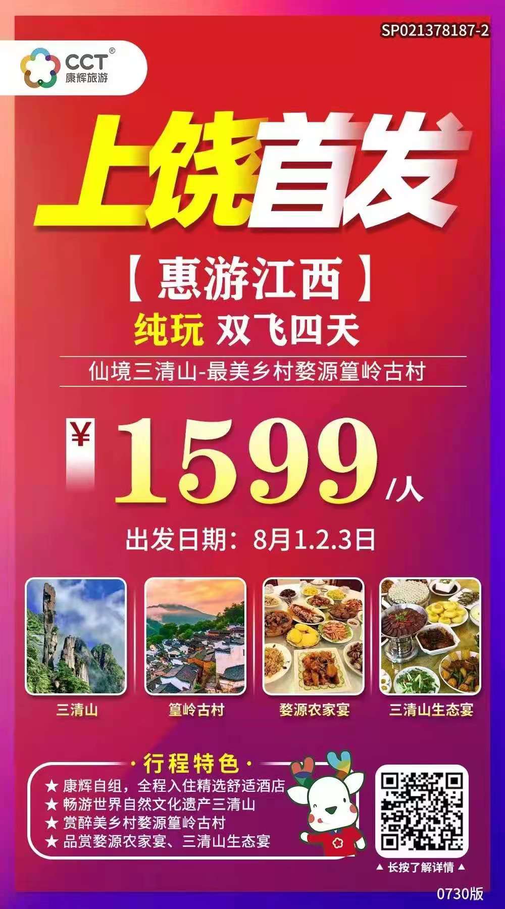 廣州往返江西上饒+三清山+篁嶺古村純玩雙飛四天三晚跟團(tuán)游