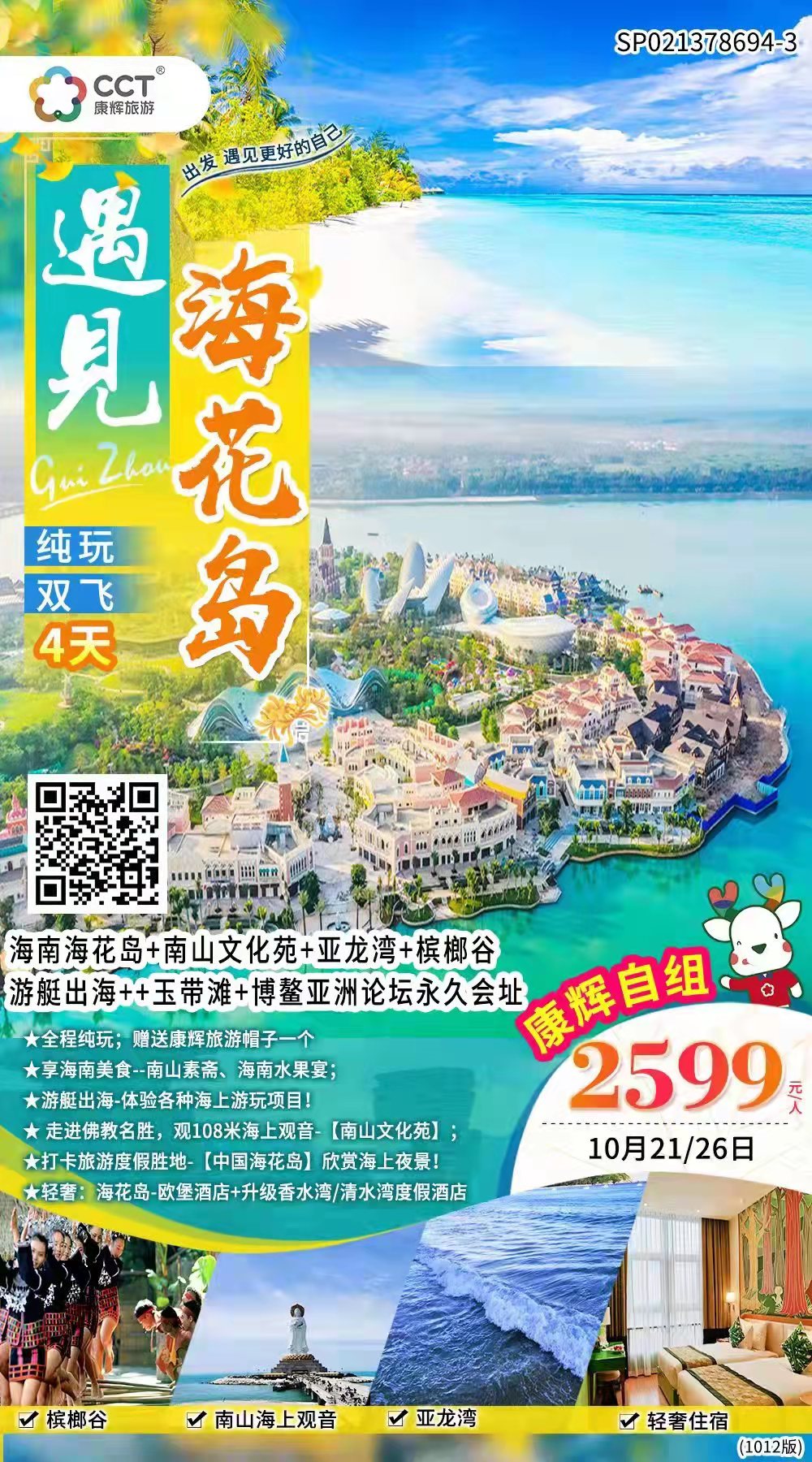 廣州往返海南?;◢u、南山文化苑、亞龍灣沙灘 、游艇出海純玩雙飛4天、遇見?;◢u